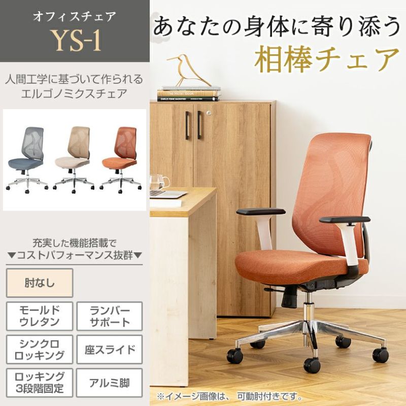 オフィスチェア YS-1 肘なし ランバーサポート 人間工学 シンクロロッキング メッシュチェア デスクチェア テレワーク椅子 白 ホワイト おしゃれ