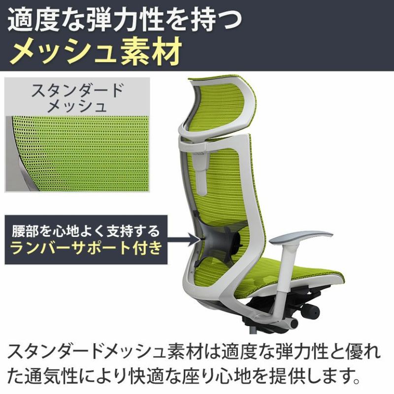 | 備考 | ・ランバーサポート付き(上下5段階(50mm)調節可能) ・スタンダードメッシュ 適度な弾力性と優れた通気性により、長時間でも快適な座り心地を実現します。 ・グリーン購入法適合商品 |
