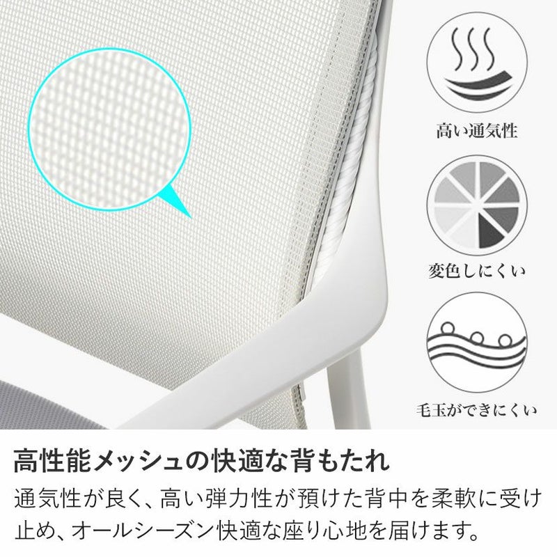背もたれのメッシュ生地は、弾力性と耐久性に優れた高性能仕様。