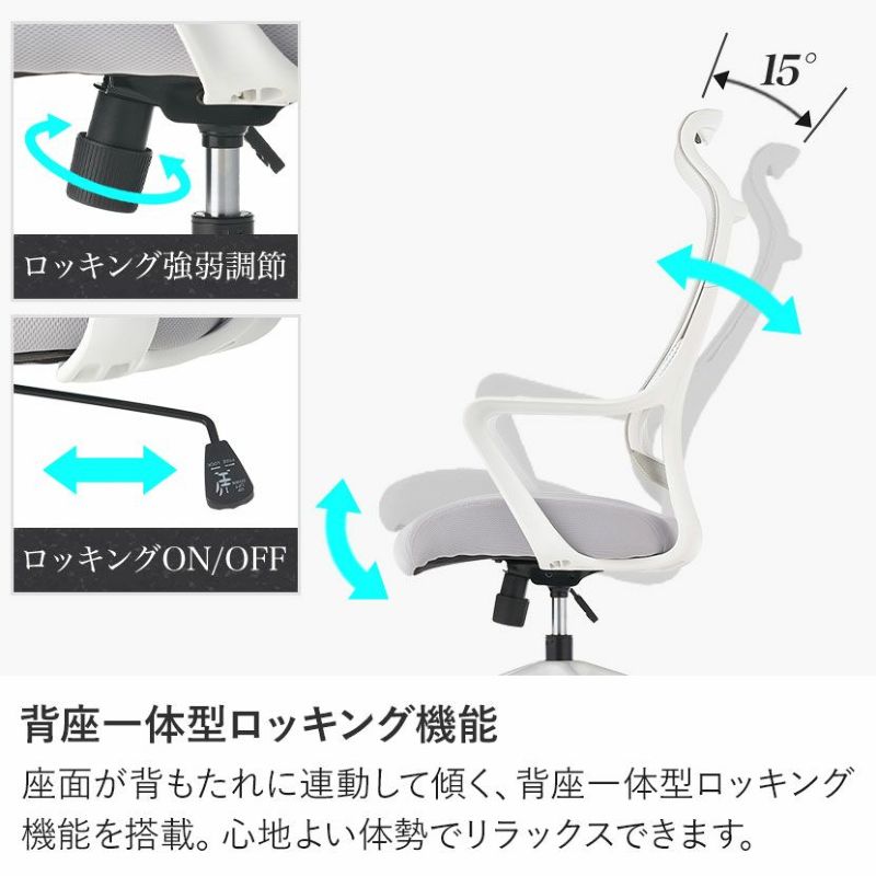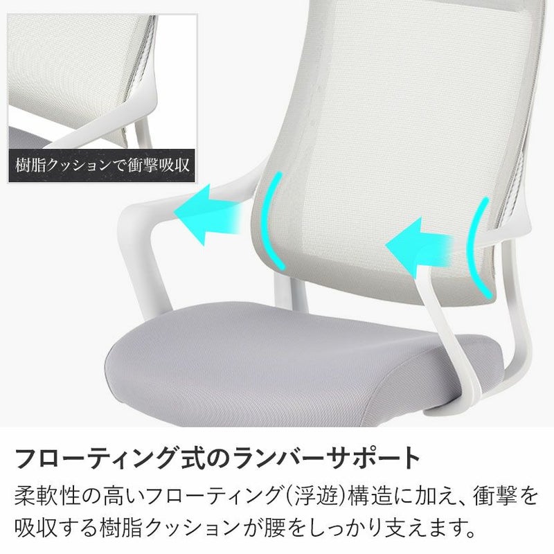 高性能メッシュを採用し、ランバーサポートやロッキングなど、機能面からでも快適なデスクワークをサポートします。