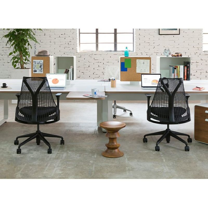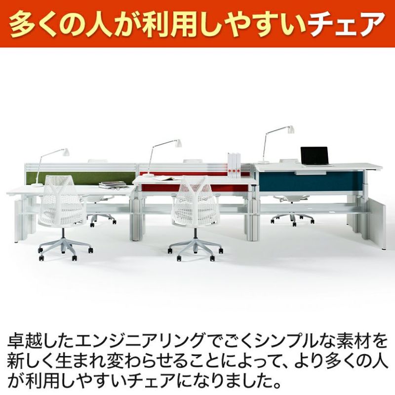 最小限の素材を使用しながら最大限のものを提供する構造を持つ吊り橋にインスピレーションを受けて、デザイナーであるイヴ・ベアールはこの素晴らしい構造の工学原理を適用して、セイルチェアを生み出しました。このワークチェアの「エコ非物質化」のデザインは、より少ない素材をより独創的な方法で使用することで159kgまでの体重を人間工学的にサポートします。ハーマンミラーは製造工場と購入者の距離を縮めるために、セイルチェアを3大陸で製造しています。ポリ塩化ビニールを含んでおらず、素材のほとんどが完全にリサイクル可能となっています。