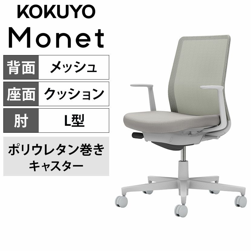 他の画像を見る 【設置無料】 ワークチェア モネット Monet オフィスチェア L字肘(固定肘) 樹脂脚 ウレタンキャスター ランバーサポート付き 背メッシュ 座面布張り 本体/脚ライトグレー 背座ライトグレー C03-G112U コクヨ 椅子 送料無料 送料無料 組立設置付き 組立設置付き 日本製 日本製 ¥ 81,900 税込 詳細を見る