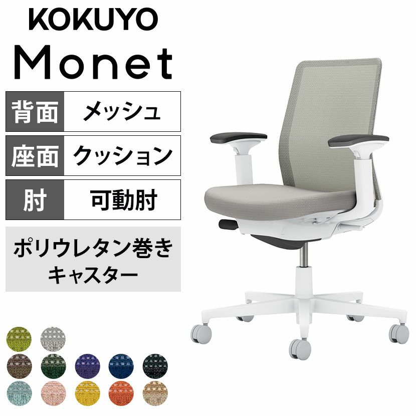 他の画像を見る 【設置無料】 ワークチェア モネット Monet オフィスチェア 可動肘 樹脂脚 ウレタンキャスター 背メッシュ 座面布張り 背座同色 本体/脚ホワイトグレー C03-W130U コクヨ 椅子 送料無料 送料無料 組立設置付き 組立設置付き 日本製 日本製 ¥ 89,900 税込 詳細を見る