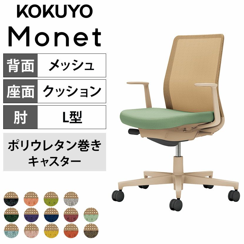 他の画像を見る 【設置無料】オフィスチェア モネット Monet 背クッションタイプ 背座別色 背色選択タイプ L型肘 ショルダーサポートなし ランバーサポートなし 脚ソフトベージュ 本体ソフトベージュ 座ソフトベージュ ポリウレタン巻きキャスター C03-Z210U | コクヨ オフィスチェア 送料無料 送料無料 組立設置付き 組立設置付き 日本製 日本製 ¥ 73,900 税込 詳細を見る