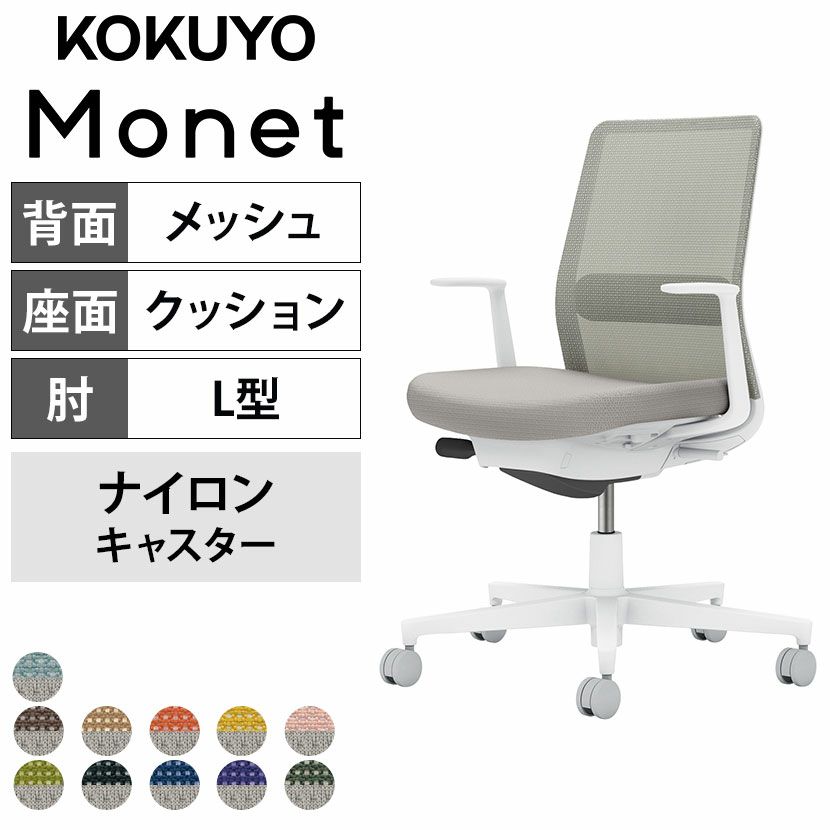 他の画像を見る 【設置無料】オフィスチェア モネット Monet 背メッシュタイプ 背座別色 座色選択タイプ L型肘 ショルダーサポートなし ランバーサポートなし 脚ライトグレー 本体ライトグレー 背ライトグレー ナイロンキャスター C03-G110W | コクヨ オフィスチェア 送料無料 送料無料 組立設置付き 組立設置付き 日本製 日本製 ¥ 73,900 税込 詳細を見る