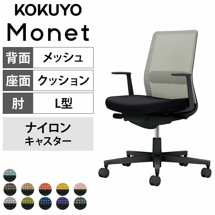 他の画像を見る 【設置無料】オフィスチェア モネット Monet 背メッシュタイプ 背座別色 座色選択タイプ L型肘 ショルダーサポートなし ランバーサポートあり 脚ブラック 本体ブラック 背ブラック ナイロンキャスター C03-B112W | コクヨ オフィスチェア 送料無料 送料無料 組立設置付き 組立設置付き 日本製 日本製 ¥ 81,900 税込 詳細を見る