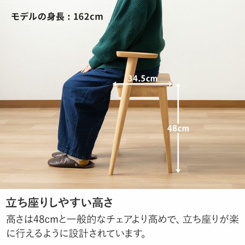 高さは48cmと一般的なチェアより高めで、立ち座りが楽に行えるように設計されています。