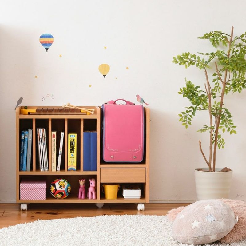 幅82cm ランドセルラック カウンター下 多機能 ランドセル 収納 キャスター付き 木製 本棚 子供 スリム ラック 絵本ラック キッズ リビング