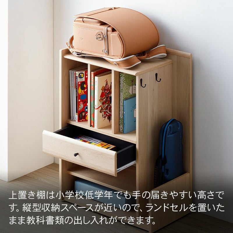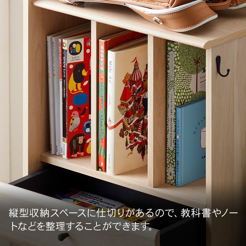 ●縦型収納スペースが近いので、ランドセルを置いたまま教科書類の出し入れができます。