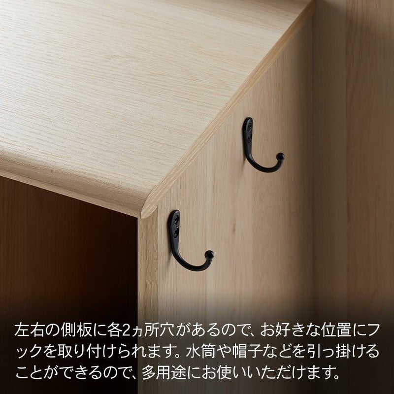 ●左右の側板に各2ヵ所穴があるので、お好きな位置にフックを取り付けられます。