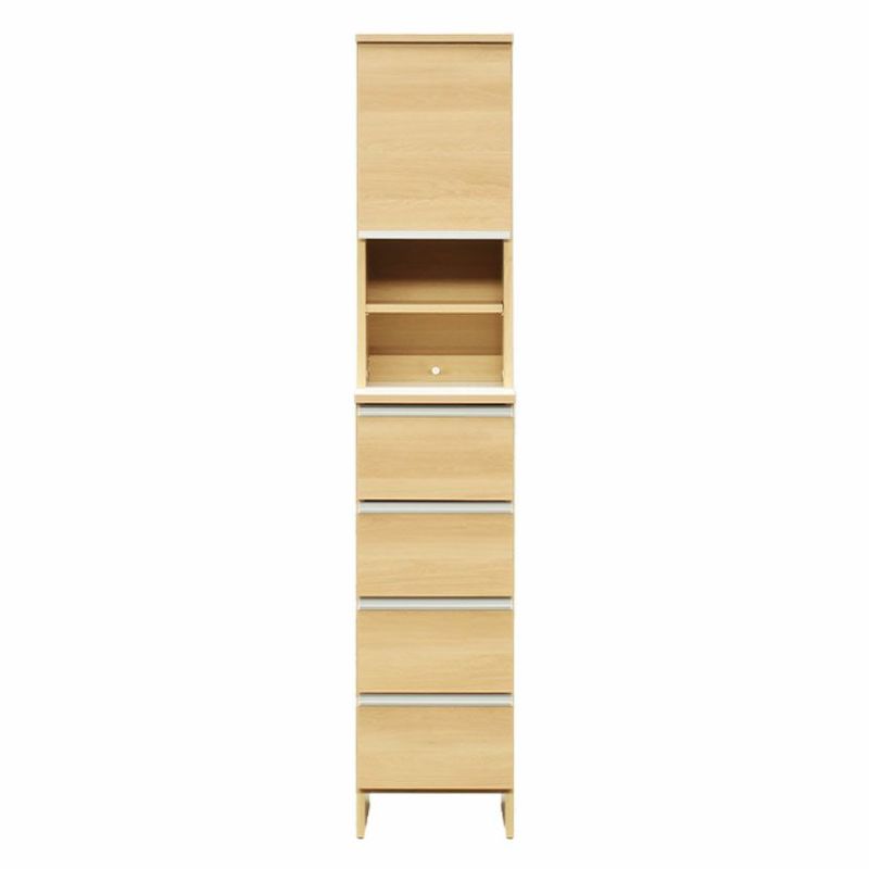 ●両開き扉とオープン部に各1枚付いているので、洗濯洗剤など、収納物のサイズに合わせて高さ調節することができます。