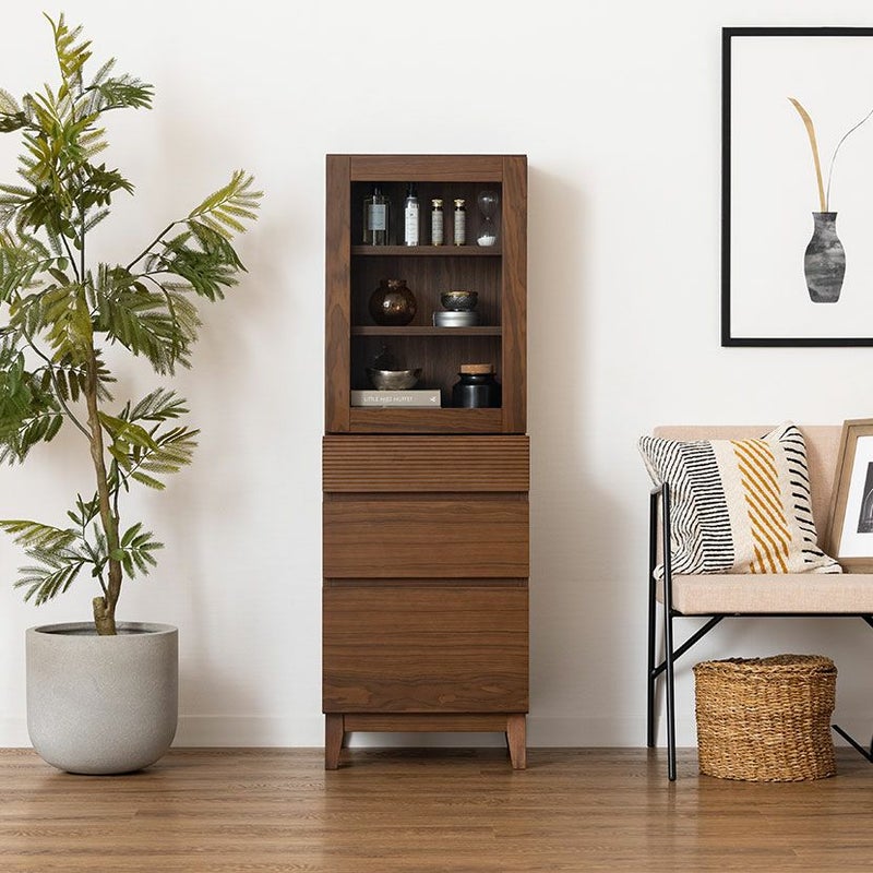 上段収納部はガラス扉仕様のため、お気に入りの香水の瓶などを飾って見せる収納を楽しめます。