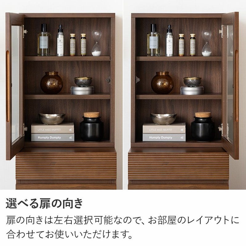 ガラス扉収納部の扉の向きは左右選択可能なので、お部屋のレイアウトに合わせてお使いいただけます。