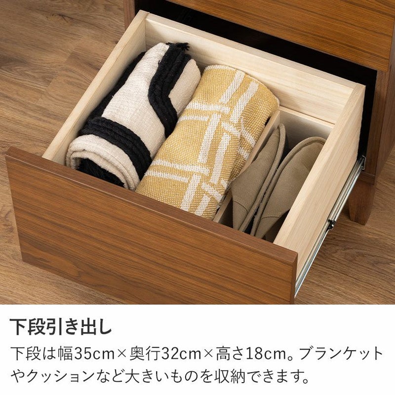 重厚感のあるウォールナット突板とポプラ無垢材を使用しており、濃いブラウンの色味と上品な佇まいが、お部屋に落ち着いた雰囲気を醸し出してくれます。
