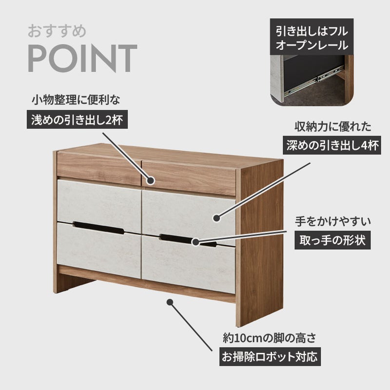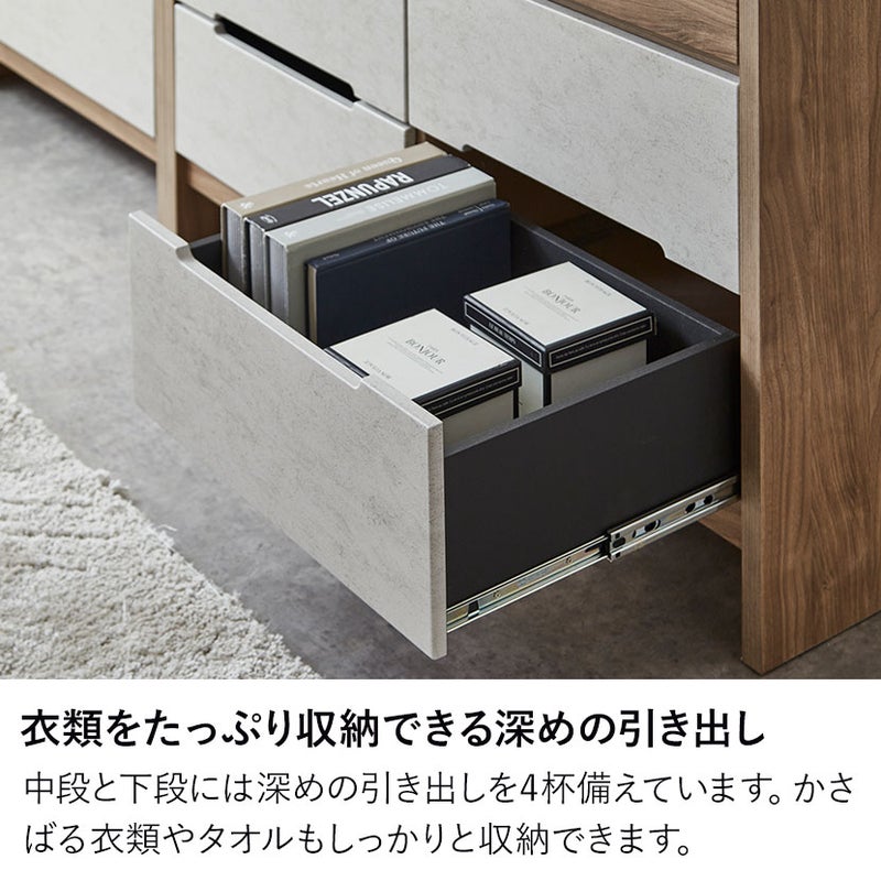 中段と下段には、深めの引き出しを合計4杯備えています。