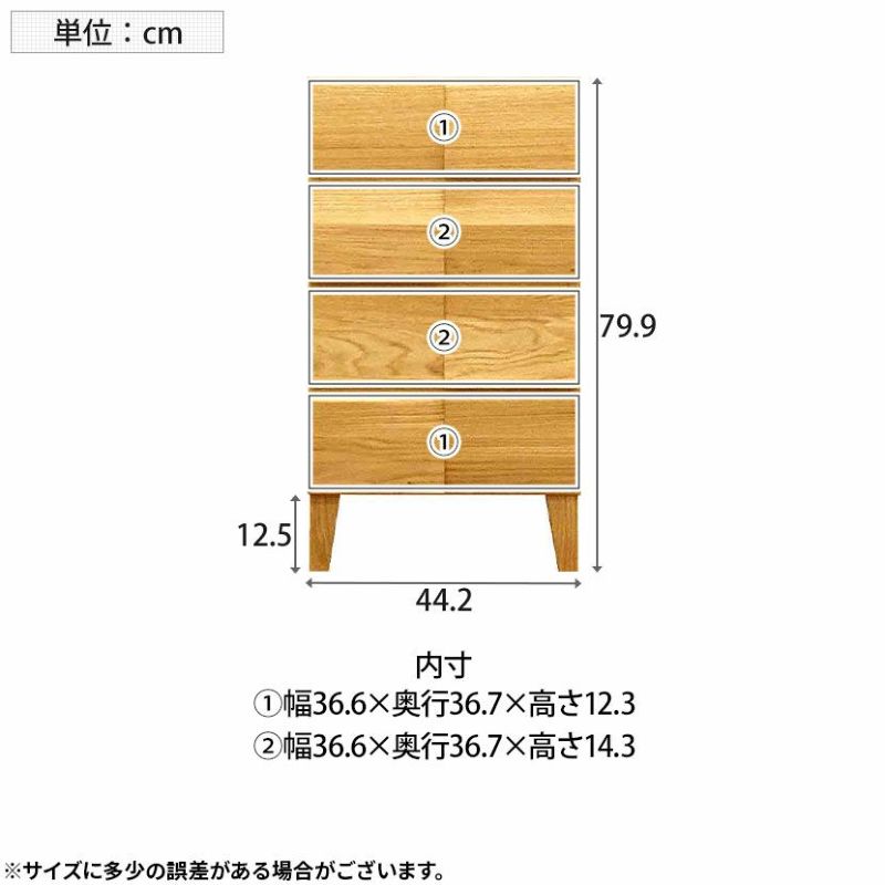 【設置無料】幅44.2cm 4段チェスト オーク 無垢材 桐材 洋服収納 おしゃれ 衣類収納 整理タンス 収納 シンプル 国産 日本製 ルンバブル
