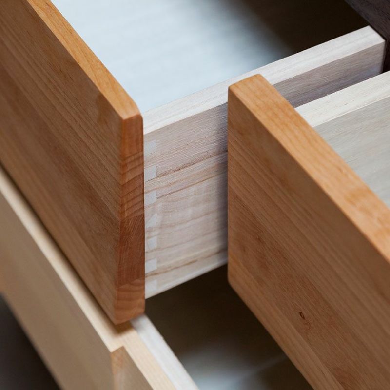 丸田木工株式会社は1958年に福岡県大川市にて設立された老舗家具メーカーになります。独自のデザイン、企画を行い、一貫した自社工場生産にて高品質な家具を生産しています。生涯を伴にする家具だからこそ、素材選びには徹底したこだわりを持っており、商品に使用している木材は樹木の上質な部分だけを厳選し、合板、パーティクルボードは「F☆☆☆☆」のものを使用していますので、人にやさしく仕上がり感や耐久性に格別な違いがあります。また素材だけでなく、高級婚礼家具製造で培ってきた、気密性の高い桐引き出しに強いこだわりを持っていおりう、熟練の職人の手によって丁寧に調整・仕上げがされているのが特徴です。国産家具だからこそできる細かい技術がたくさん詰まっている製品を提供しています。