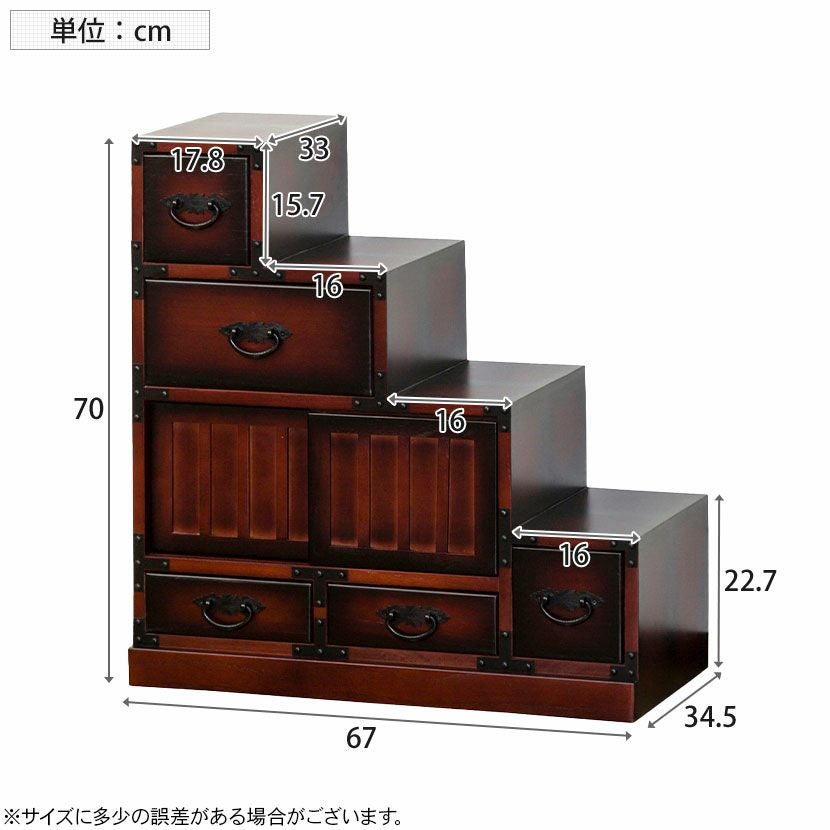 他の画像を見る 幅67cm 民芸 民芸調 和タンス 階段箪笥 右下がり 和室 収納棚 収納 引き出し 高級感 和風 和モダン 天然木桐 完成品 クーポン対象 クーポン対象 送料無料 送料無料 ¥ 23,900 税込 カートに入れる