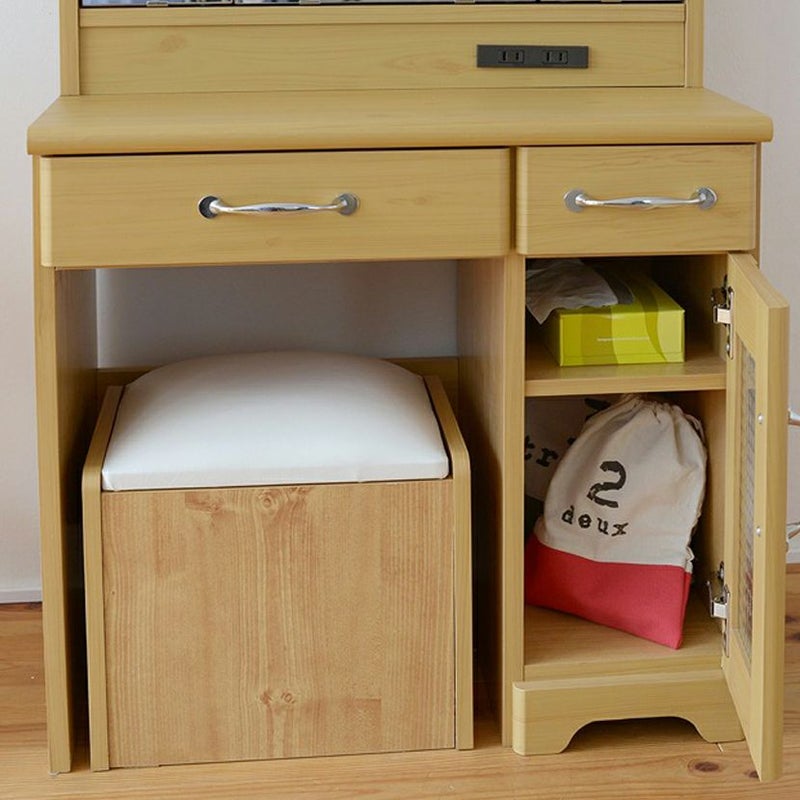 ・ミラーの裏側と座面の中に収納可能なスペース付きでとても便利です。