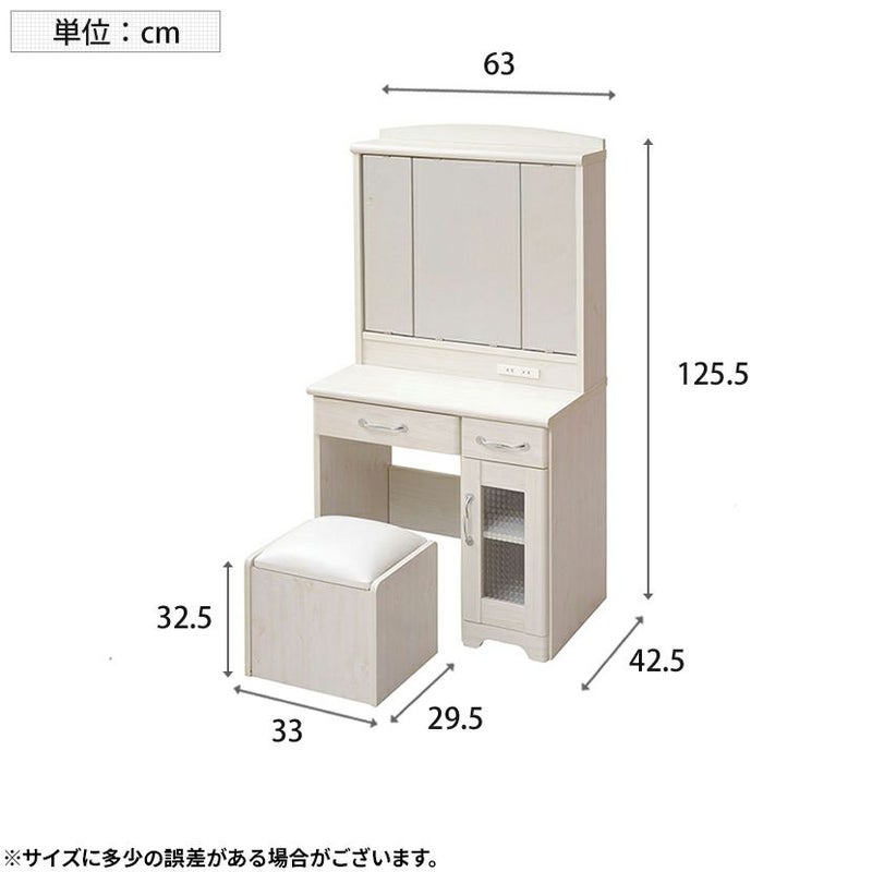 | 外寸 | (ドレッサー)幅630×奥行425×高さ1255mm (スツール)幅330×奥行295×高さ325mm |