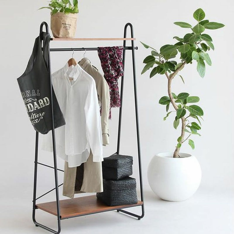 ●木とスチールが融合したシンプルなデザインの中にポイントとなる機能を押さえたハンガーラックです。