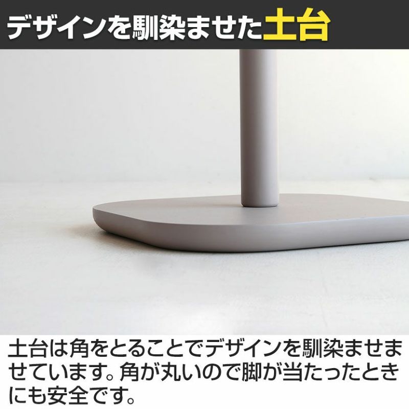 ポールハンガーとして必要な土台面積は確保しつつ、角をとることでデザインを馴染ませました。また、角が丸いので脚が当たったときに安心です。