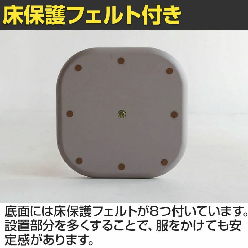 底面には床保護フェルトが8つ付いています。設置部分を多くすることで、服をかけても安定感があります。
