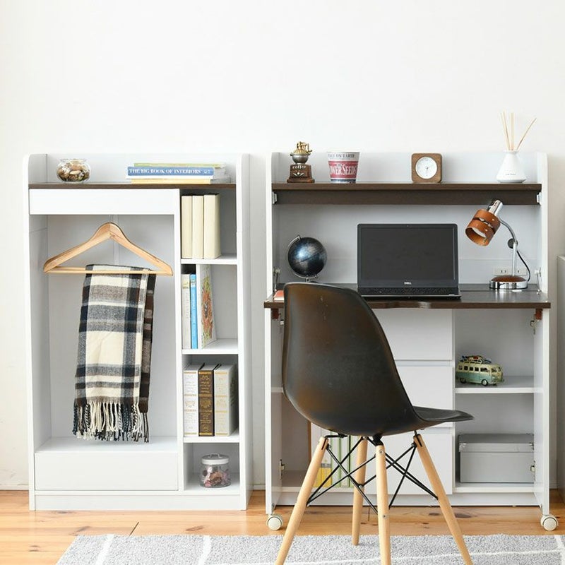 幅70cm ハンガーラック マルチラック スリム 洋服 収納 本棚 4段 ジュニアラック ラック 引き出し 収納棚 リビング収納 子供部屋 デスクサイドラック
