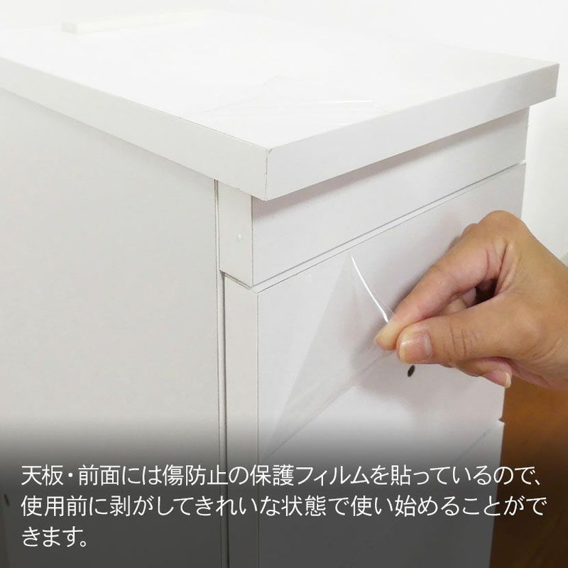 ●天板・前面には傷防止の保護フィルムを貼っているので、使用前に剥がしてきれいな状態で使い始めることができます。