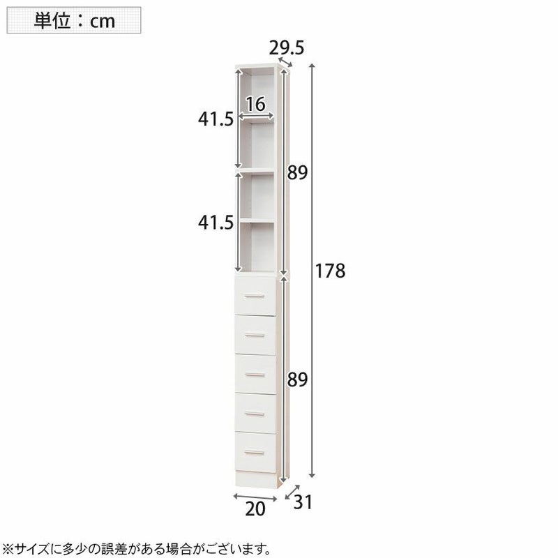 | サイズ | 外寸 / 幅200×奥行310×高さ1780mm 引き出し内寸 / 幅135×奥行235×高さ105mm