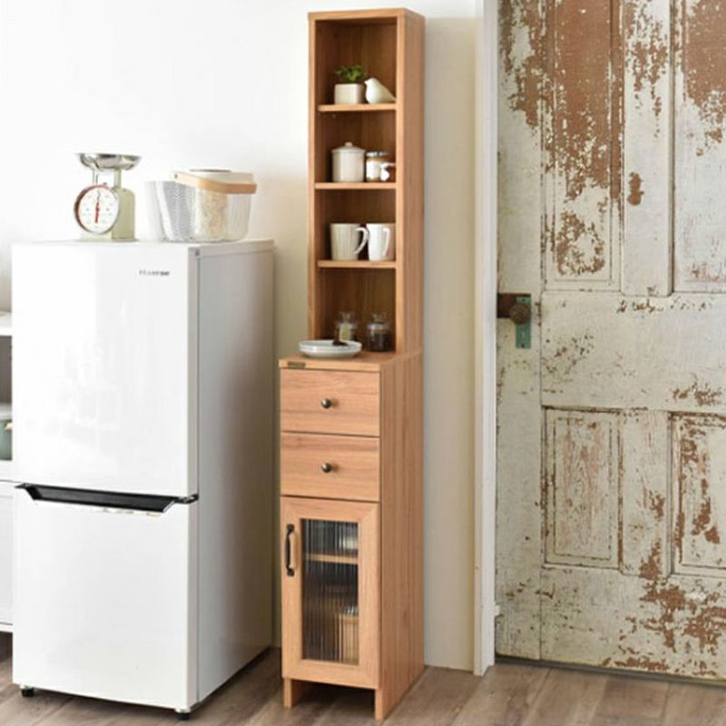 幅35cm ゴミ箱付き食器棚 木目調 家具調 スリム 45L ダストボックス プッシュ式 キッチンラック ガラス扉 可動棚付き 隙間収納 リビング収納 おしゃれ ブラウン 白 送料無料 送料無料 ¥ 13,990 税込