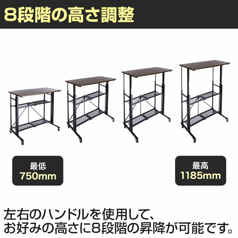 他の画像を見る 幅70cm 昇降テーブル E-WIN ガス圧昇降式 高さ調節 角度調整 折りたたみ キャスター付き スタンディングテーブル スタンディングデスク 送料無料 送料無料 ¥ 26,990 税込 カートに入れる