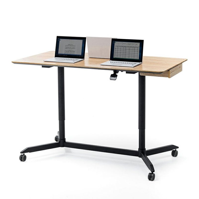 ガスシリンダーを両脚に内蔵したミーティング用上下昇降デスクです。