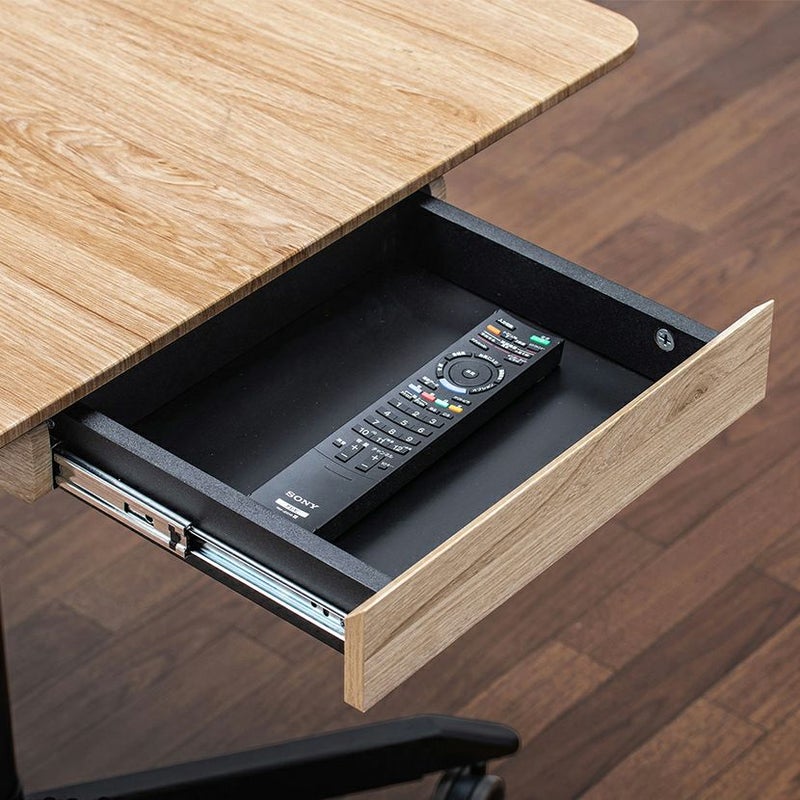 天板端部には引き出しがあり、ディスプレイのリモコンやテレビ会議で使用するマイク、ケーブルなどを収納しておくことができます。