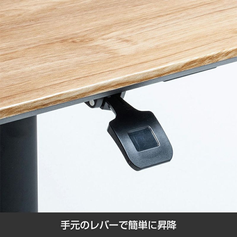 | 材質 | 天板 / 木製(MDF)、塩化ビニルシート貼り フレーム / スチール(エポキシ樹脂粉体塗装) 昇降フレーム / アルミ(エポキシ樹脂粉体塗装) |