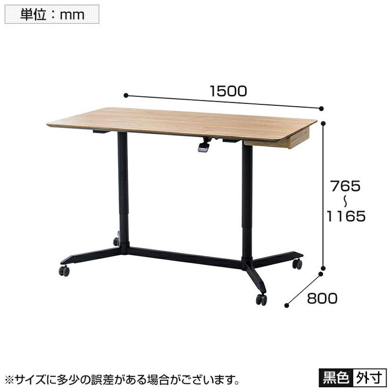 | サイズ | キャスター使用時 / 幅1500×奥行800×高さ765~1165mm アジャスター使用時 / 幅1500×奥行800×高さ705~1105mm |