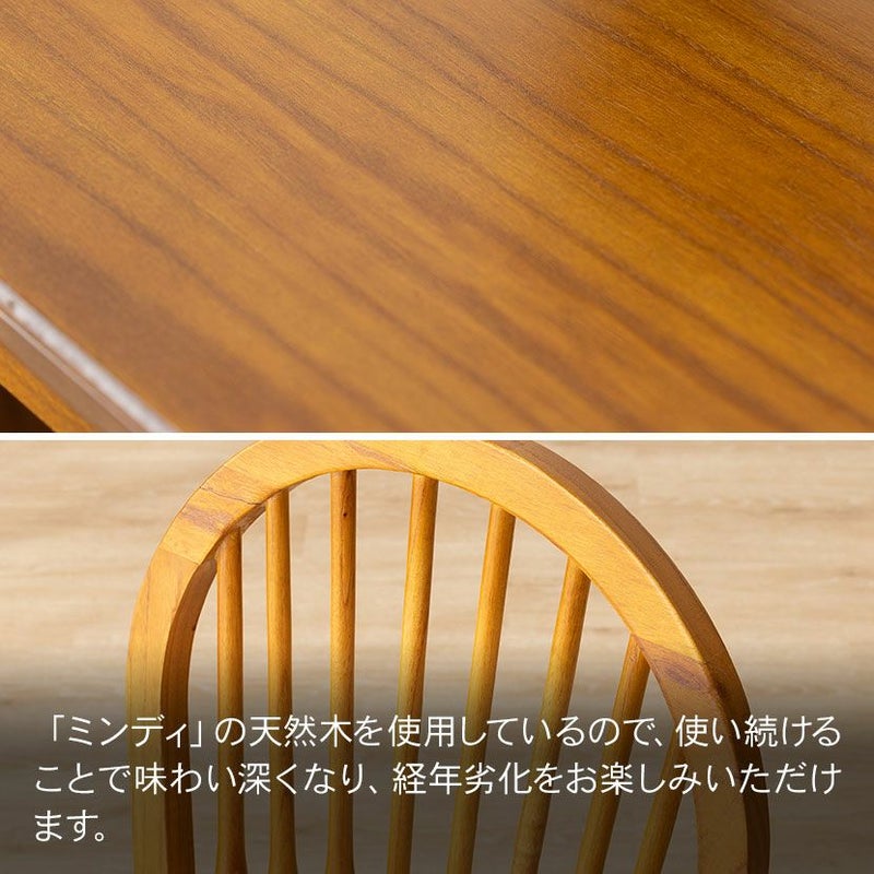 硬く頑丈という特徴から彫刻材としても使われております。またミンディ材を使用した家具は使い続ける事で味わい深くなり、経年変化をお楽しみ頂けます。