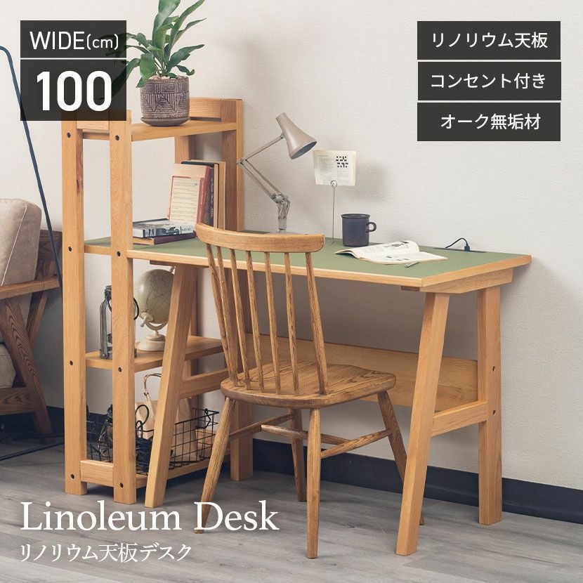 幅100cm デスク リノ 木製 オーク材 リノリウム 机 コンセント付き 学習机 スリム パソコンデスク PCデスク ワークデスク 北欧 勉強机 おしゃれ シンプル テレワーク