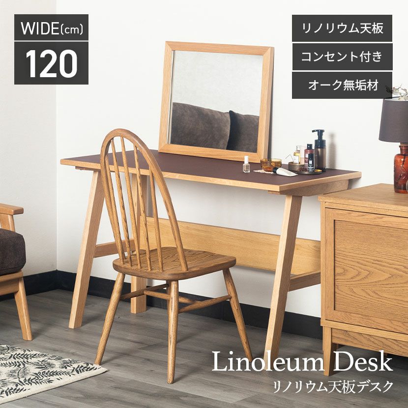 幅120cm デスク リノ 木製 オーク材 リノリウム 机 コンセント付き 学習机 スリム パソコンデスク PCデスク ワークデスク 北欧 勉強机 おしゃれ シンプル テレワーク