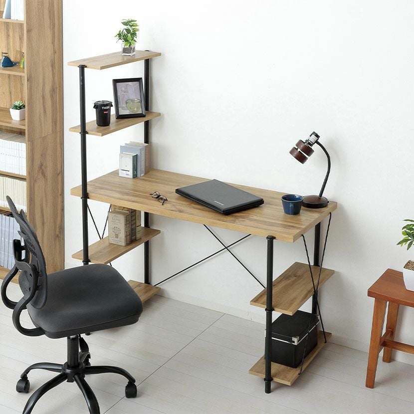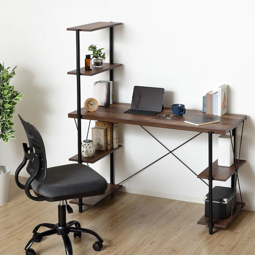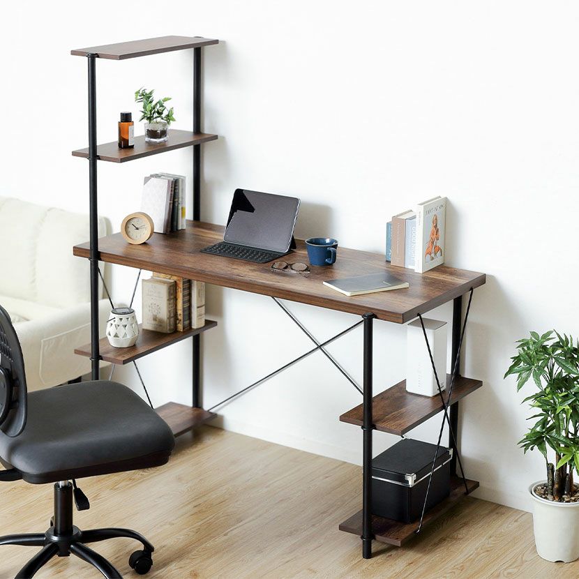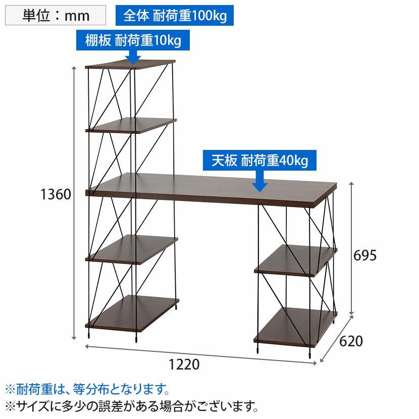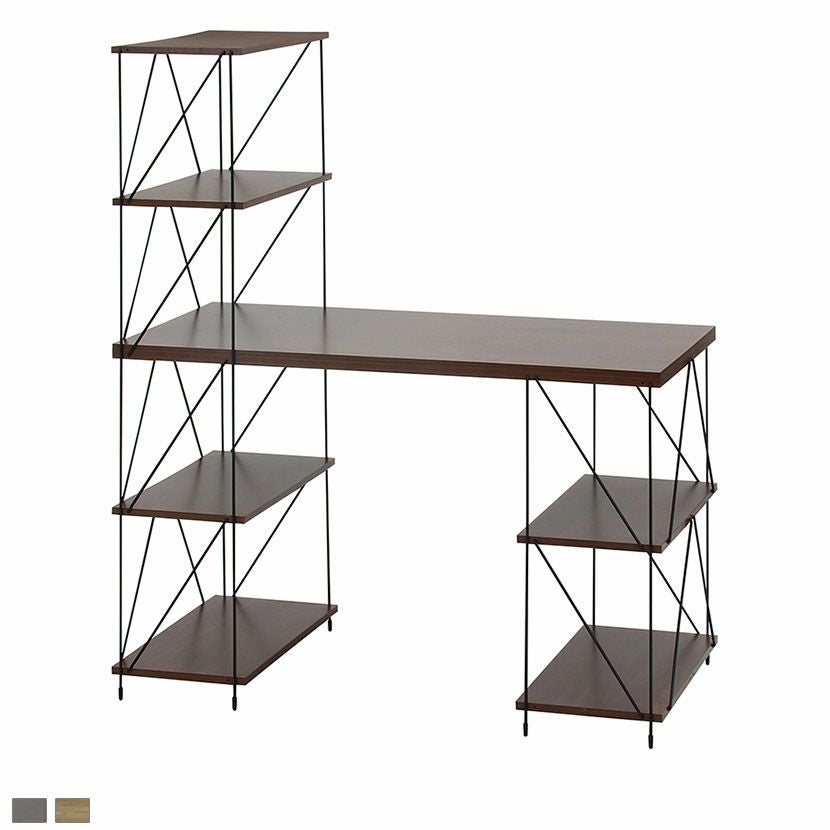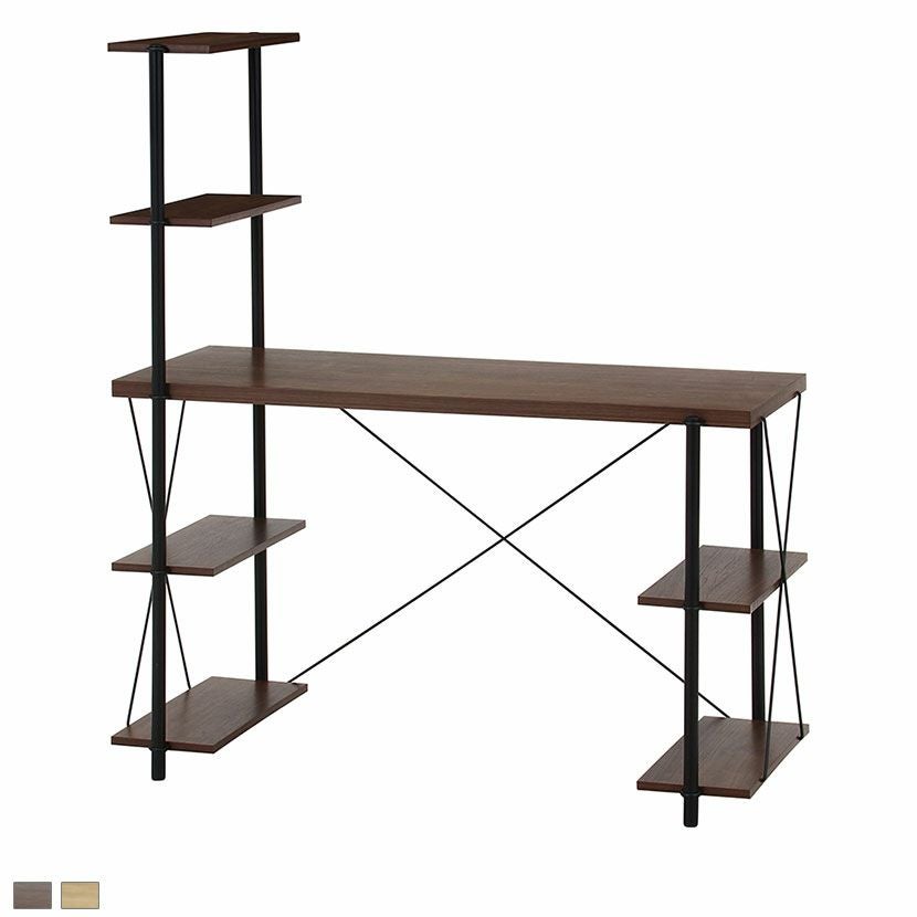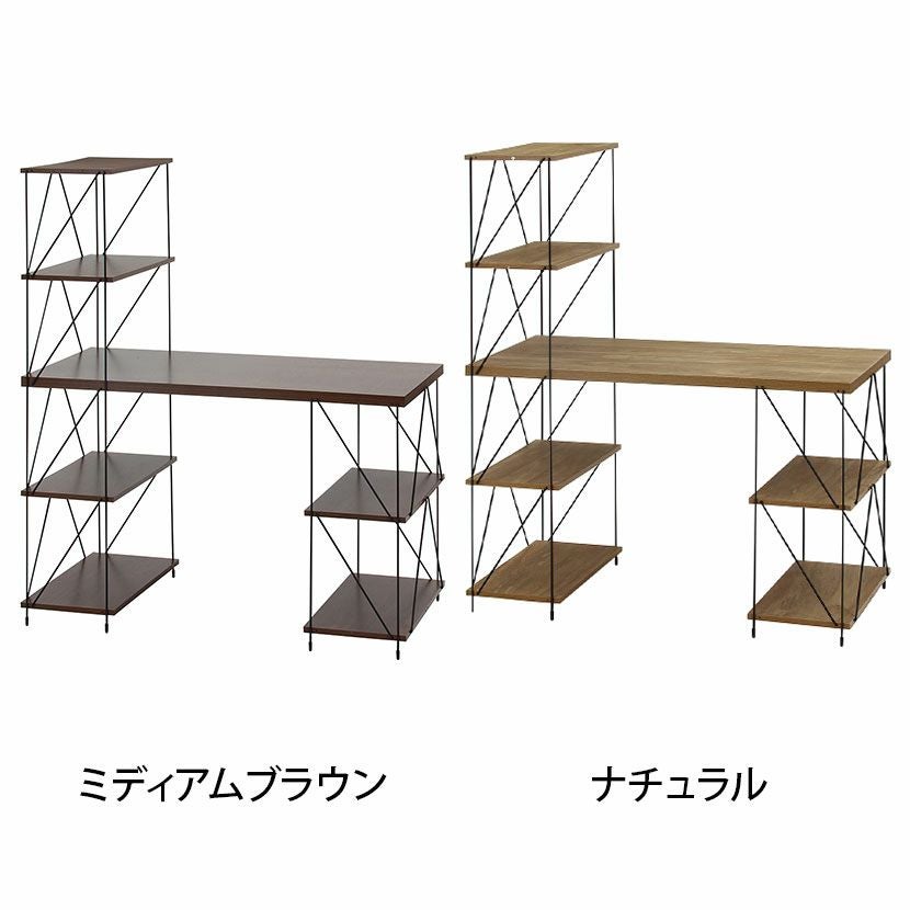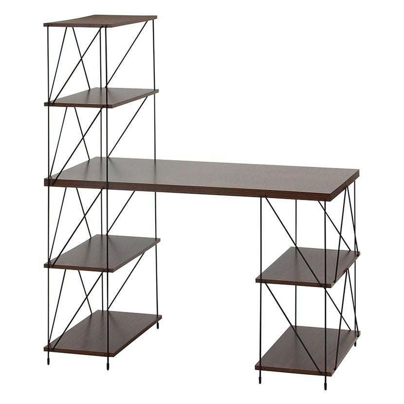 幅122cm リビングデスク EZBO システムデスク 収納 ワークデスク おしゃれ ラックデスク ワイヤーデスク 棚付き パソコンデスク モダン ブラウン ナチュラル