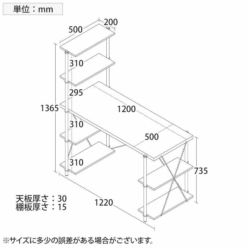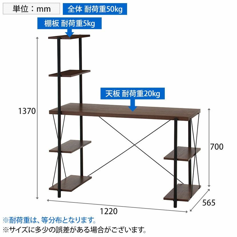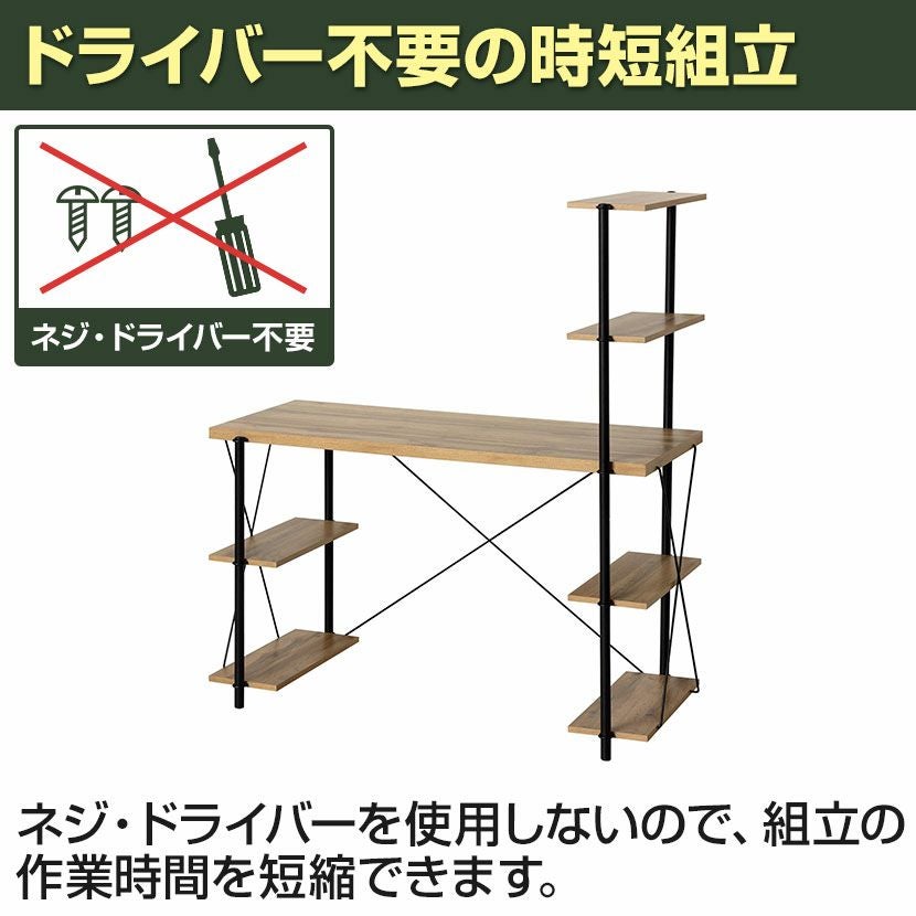 幅122cm らくらく組立 ラックデスク 収納デスク 在宅ワーク ドライバー不要 ネジなし 収納 スチール フレーム 机 デスク ラック オープンラック ワークデスク パソコンデスク