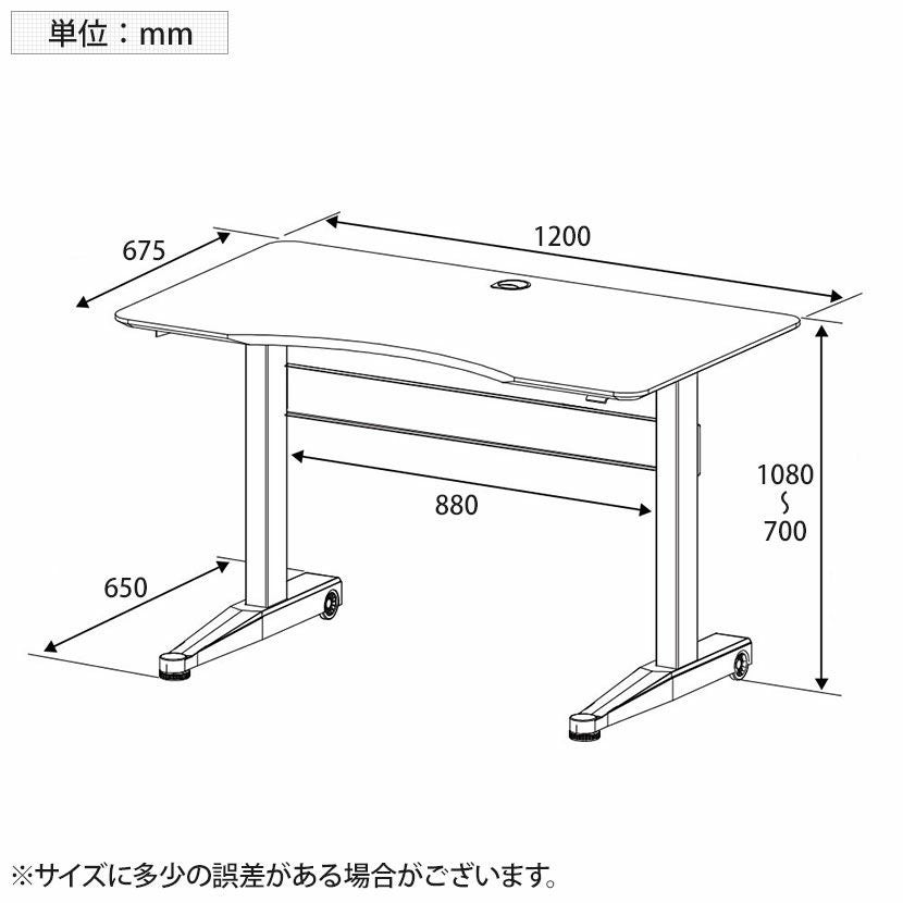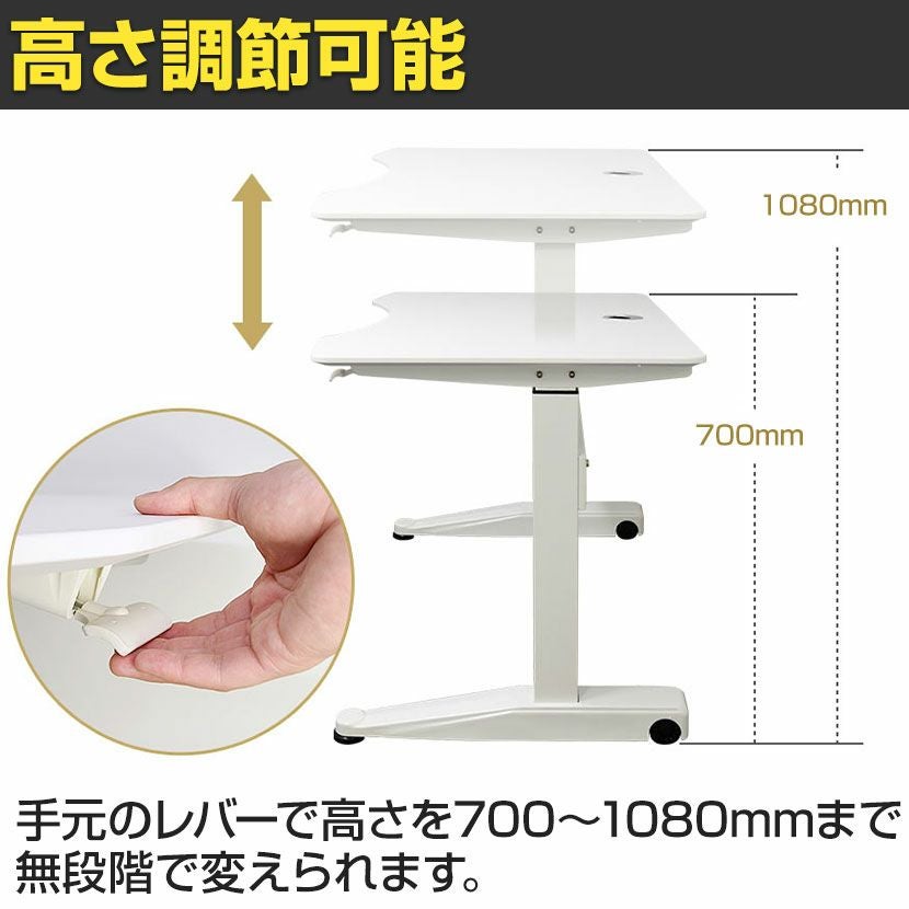 幅120cm 昇降デスク 手動レバー式 キャスター2個付き 配線穴付き アジャスター付き TVSOFLD704 在宅勤務 デスク 昇降デスク スタンディングデスク