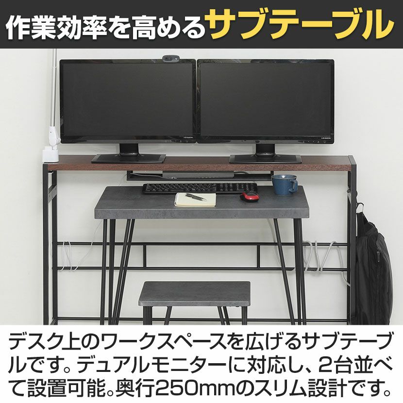 他の画像を見る 幅125cm デュアルモニターテーブル モニター台 高さ2段階調節 コンセント収納 壁面設置 薄型 アジャスター付き モニタースタンド パソコンスタンド サブテーブル クーポン対象 クーポン対象 送料無料 送料無料 ¥ 11,200 税込 カートに入れる