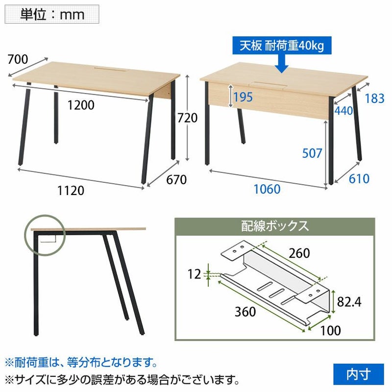 電源タップやコードをまとめて収納でき、すっきりと机上を整理できる配線ボックスを装備。