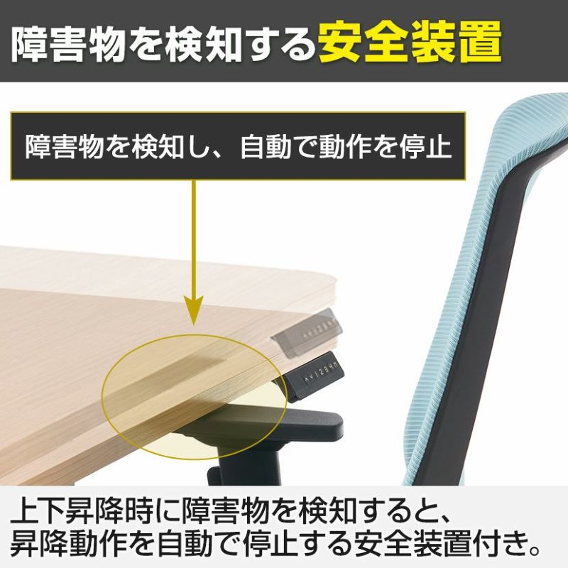 上下昇降時に障害物を検知すると、昇降動作を自動で停止する安全装置付きです。
