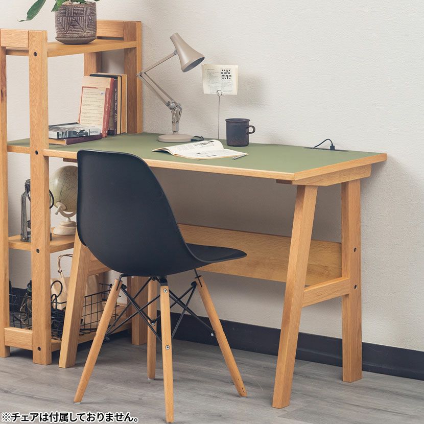 ほとんどの汚れは乾いた布巾もしくはかたく絞った布巾で取ることができます。お手入れのしやすさも魅力の一つです。充電しながら天板には2口コンセントとUSBポート付き。スマホやPCでの作業も快適に行えます。あると嬉しい切り欠きデスクを壁にぴったりと設置できるよう、天板にはコードが通せる切り欠きが施されています。同シリーズのシェルフと合わせて別売りのシェルフと組み合わせると、2段目の高さが同じなので天板を広く使うことができます。