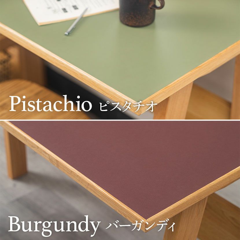 天然素材のリノリウム天板リノリウムは柔らかでマットな質感。適度な弾力があり書き物にも最適です。リノリウムの魅力●天然の原材料