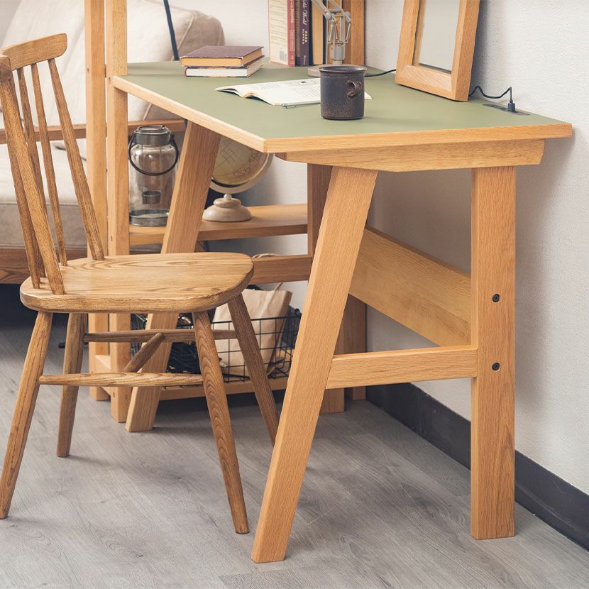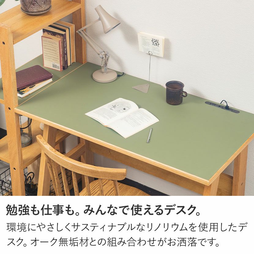 環境にやさしくサスティナブルなリノリウムを使用したデスク。オーク無垢材との組み合わせがお洒落です。