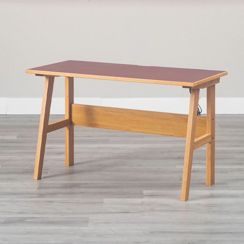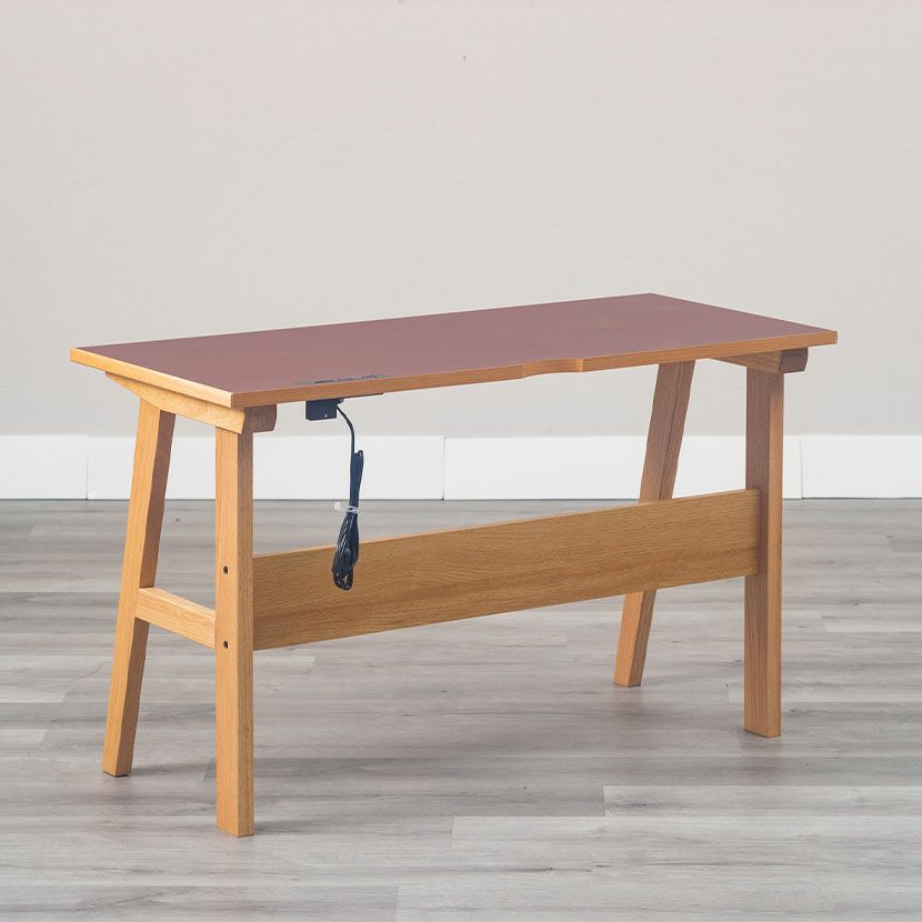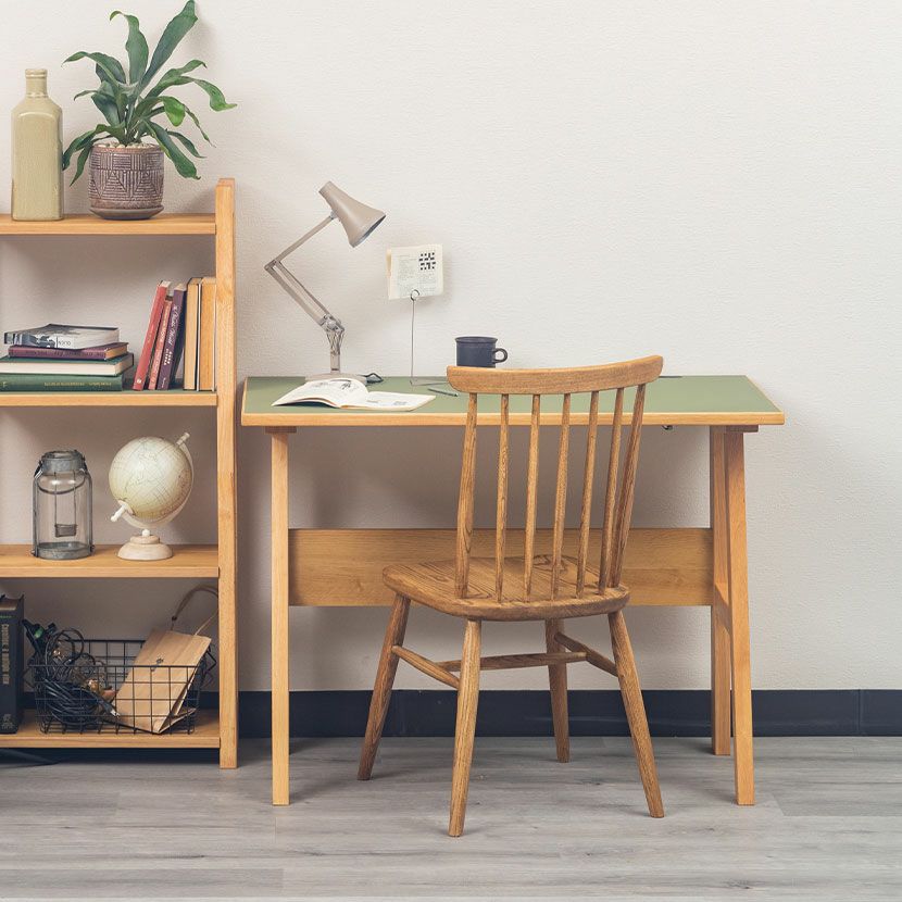 環境にやさしくサスティナブルなリノリウムを使用したデスク。オーク無垢材との組み合わせがお洒落です。