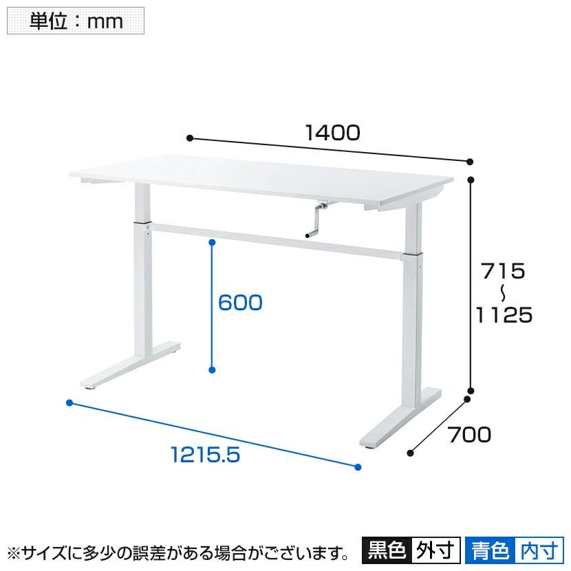 他の画像を見る 手動昇降デスク 昇降ハンドル折りたたみ仕様 脚部アジャスタ付き 幅1400×奥行700×高さ715~1125mm クーポン対象 クーポン対象 送料無料 送料無料 ¥ 65,300 税込 カートに入れる